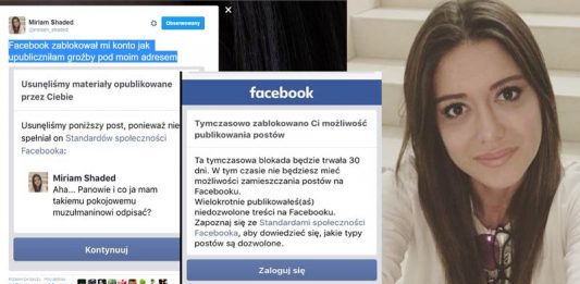 Facebook zablokował konto Miriam Shaded po tym jak upubliczniła groźby pod jej adresem ze strony muzułmanina. Dostała 30 dni bana, podczas których nie może nic publikować na swoim koncie, nie może nawet odpisywać na prywatne wiadomości (dokładnie tak samo jak ja w tej chwili, zostałem zbanowany za wideo-relację „na żywo” z Marszu Niepodległości). Innymi słowy, … Czytaj dalej Muzułmanin groził Miriam Shaded. Dostała 30 dni bana na Facebooku za wklejenie rozmowy z przestępcą!
